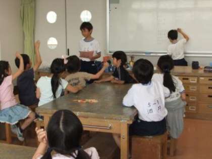 班のみんなで自己紹介、班のめあての発表をした後、班の名前や遊びを決めました。