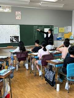 4年2組で教育実習生が国語「アップとルーズ」の研究授業をしました。子どもたちみんなが真剣に考えていて、とてもよい授業でした。