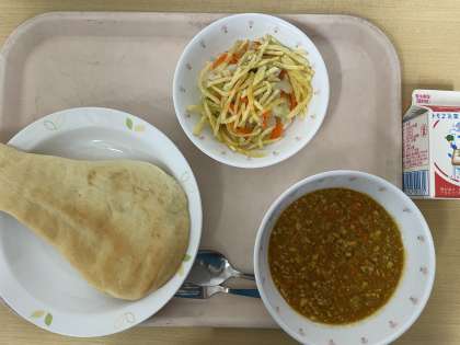 牛乳 ナン キーマカレー じゃが芋のハニーサラダ