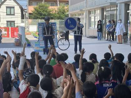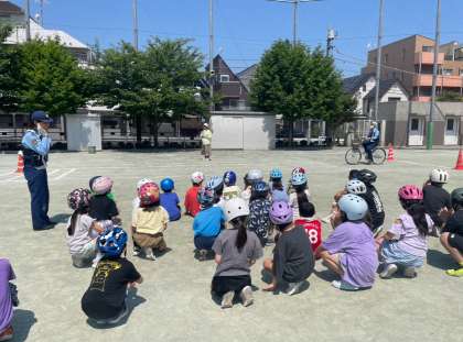 警察官の方に来ていただき、自転車に乗る前に確認することや