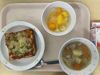牛乳 ピザトースト ポトフ フルーツジュレ