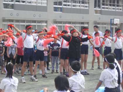 朝の時間を利用して運動会の応援合戦の練習を行いました。