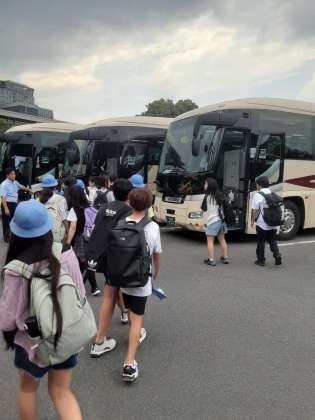 国会議事堂内を見学し、クラスごとに写真撮影をしました。バスに乗って、これから学校に向かいます。