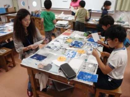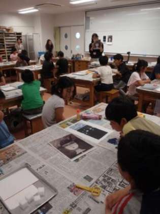 今日は、この前に美術鑑賞教室で行った世田谷美術館の方々が来てくださり、図工の授業がありました。