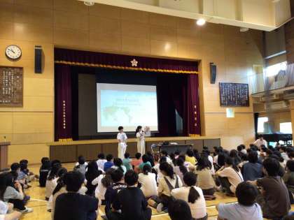 ユニクロ上町店の店長さんと社員の方が、5年生に向けて授業をしてくださいました。難民をめぐる背景や状況を知り、服にはいくつものチカラがあり、難民支援につながることを学びました。