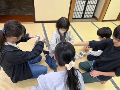 次は、室内レクの様子です。新聞を使ってゲームをしました。