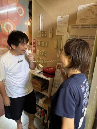 昨日は宿の放送機器が故障して使えませんでしたが、ようやく復旧して、教員たちは大喜び。入浴案内の放送を漫才風に流していました。
