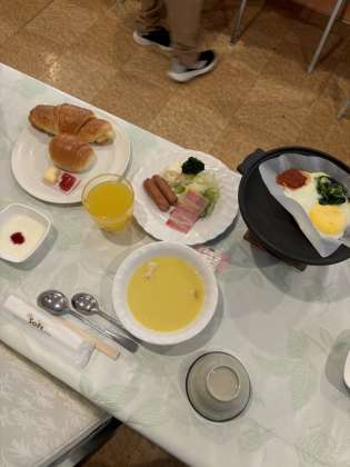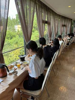 宿舎での最後の食事。今日はパンです。喜んでいる子が多いです。
