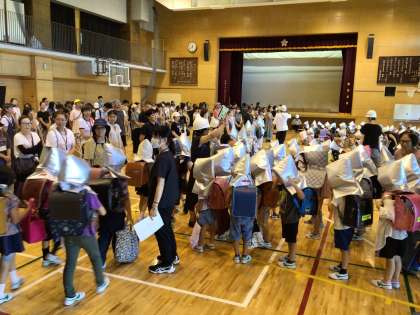 保護者の皆様のご協力のもと、体育館や教室での引き渡しが安全でスムーズに実施することができました。