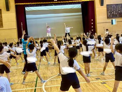 文化庁主催の「文化芸術鑑賞・体験推進事業 芸術家派遣事業」が行われました。ダンスの講師の先生方が子供たちにダンスを教えてくれました。今日は1・2年生。みんな笑顔がはじけていました。子供も教員も楽しみながら踊りました!