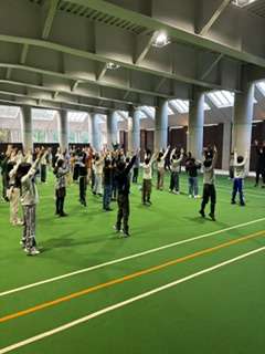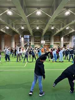 朝会です。ラジオ体操で目がさめた!と元気が出てきたようです。