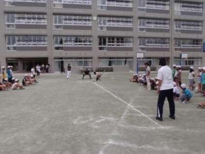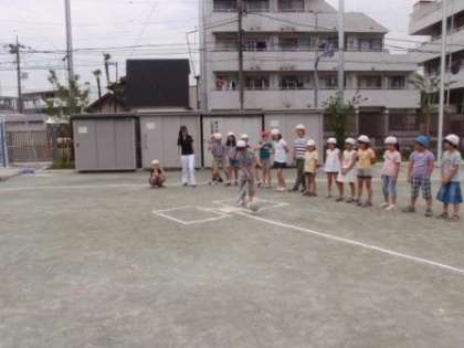 子ども達は、ゴーグルをして視界を遮ってバッターボックスに立ちました。