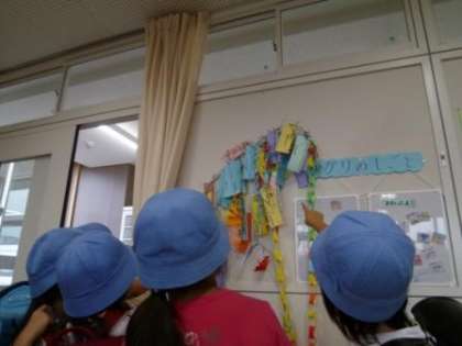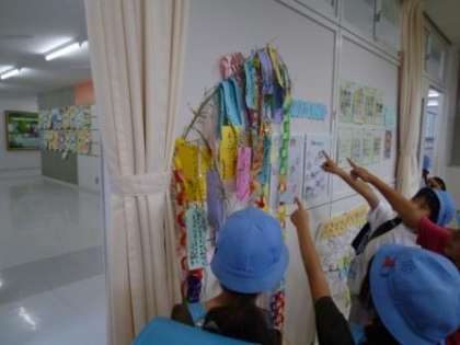 子どもたちは,短冊に願い事を書き,笹に飾りました。