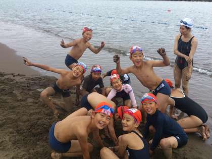 泳力別の水泳学習の合間の休憩時間にも子どもたちは、海の自然を満喫しています。