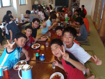 午前中、しっかり頑張った子どもたち。みんな、きれいにたいらげました。
