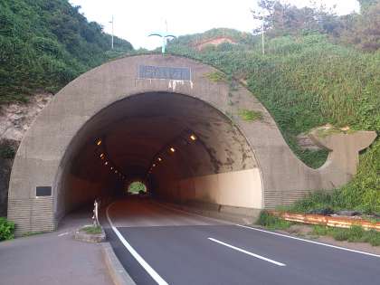 丘への途中には、鯨波海岸の鯨をあしらった可愛らしいトンネルの入り口が。