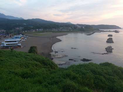 今日も、昨日も一昨日も日本海に沈む夕日が本当にきれいです。この夕日を見られただけでもここに来た価値があるんじゃないたと思えるほど、美しい夕日です。