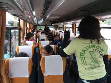 子どもたちは、ハリーポッターの映画を見たり、睡眠をとったりしながら帰路を過ごしています。
