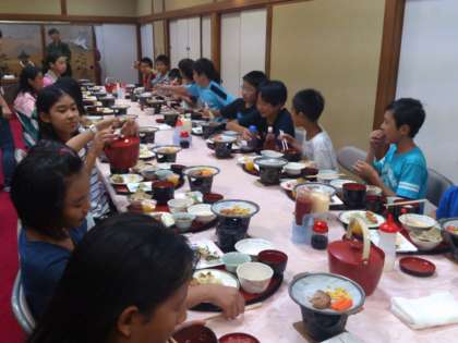 食べきれない子には、いろいろなおかずをバランスよく食べるよう声をかけています。
