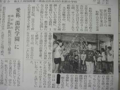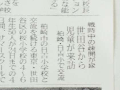 7月27日、新潟の地方紙「新潟日報」に「戦時中の疎開が縁 世田谷から児童が来訪 柏崎・日吉小で交流」と題して7月21日に桜小学校と日吉小学校が、交流会を行ったことが報じられました。