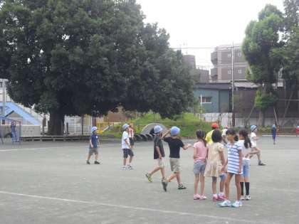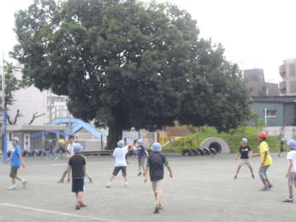 子どもたちは、登校するとすぐに友だちと誘い合って、校庭で元気いっぱい遊び始めます。