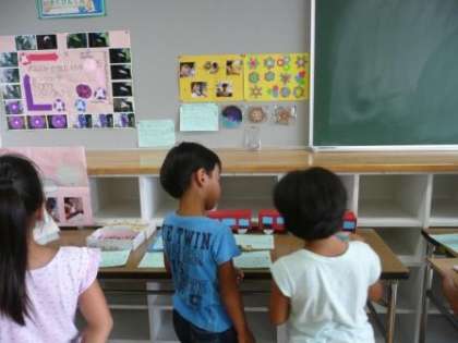 子どもたちは、友達の作品のよいところを見付けて、歓声を上げながら鑑賞していました。