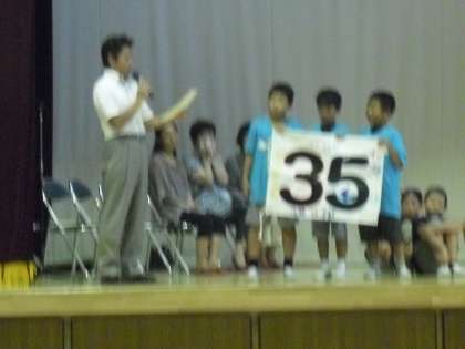 本日の児童朝会では、夏休み中にがんばった子たちを紹介しました。
