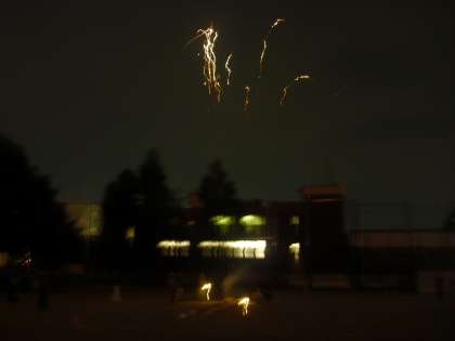 おやじの会主催 宿泊訓練 桜の夜空に美し花火が。