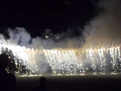 夕食の「おやじカレー」でお腹が満腹になった後は、桜小応援団のパワーもコラボして、本格的な花火大会の幕開けです。