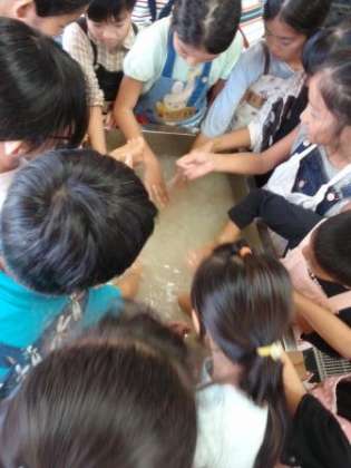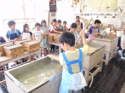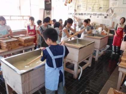 お話の後は、また工芸室へ行き、今度は和紙をすきました。