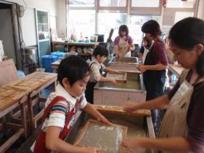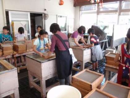 葉書3枚と和紙を2枚すいて、紙すき体験は終了しました。