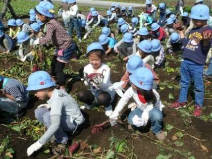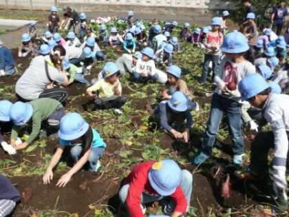 土の中からさつまいもを掘り出すと、「あった〜!」