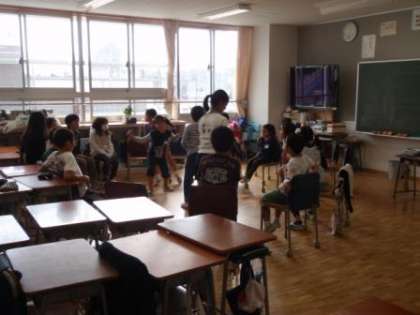 だいぶ慣れてきたメンバーと楽しく遊んでいました。小さい学年の子ども達は、大きな学年のお兄さん・お姉さんにおぶわれたり、じゃれ合ったりしてもらうのが楽しいようです。4年生もそろそろ高学年を意識し始める頃でしょうか…!?