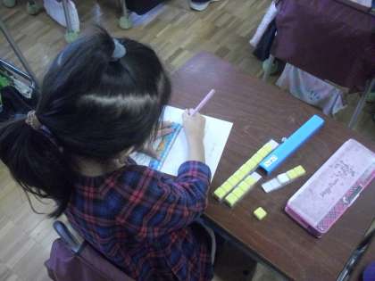 子ども達は、ブロックを使って一生懸命、計算の仕方を説明していました。