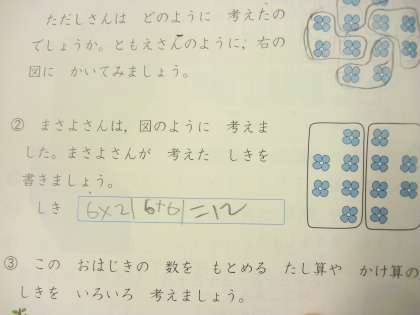 2年生は、九九を学び終え、かけ算を用いる文章題から式を考えたり、式の意味を考えたりする学習に取りくんでいます。