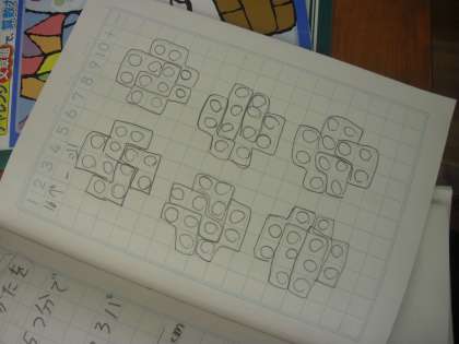 ある女の子は、教科書に書いただけではなく、なんとノートに「3つのおはじきのかたまり」を6通りも考えていました。