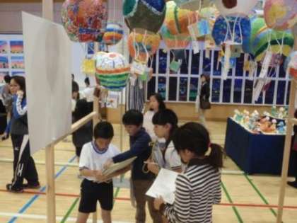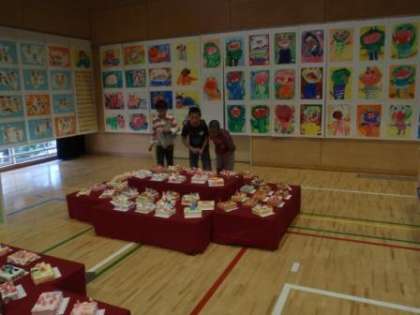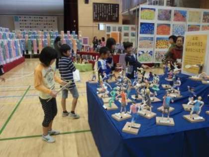 自分の作品を指し示して見せたり、同じ班の友達の作品を紹介したり、3年生の作品を探して見たり、また、他の学年の作品のよいところを話してみたり…