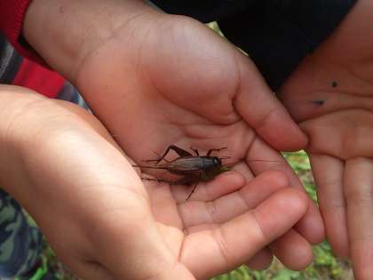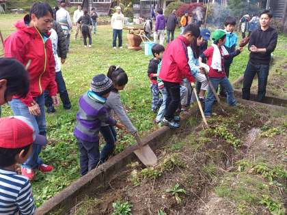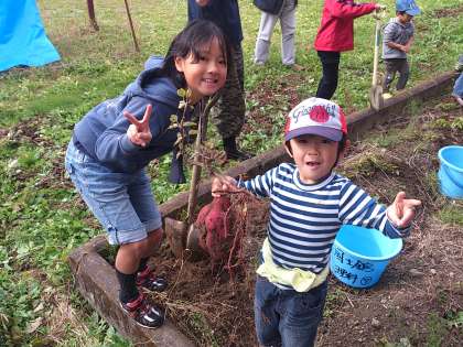 塾長の寺沢さんから注意事項を聞いて、早速、芋掘り開始!