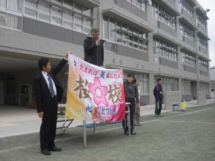 子ども達には「この旗を見て、しっかりと目標を定め、みんなの心を1つにして一生懸命がんばろうと言う気持ちになってくれたらうれしいです。」と語って下さいました。
