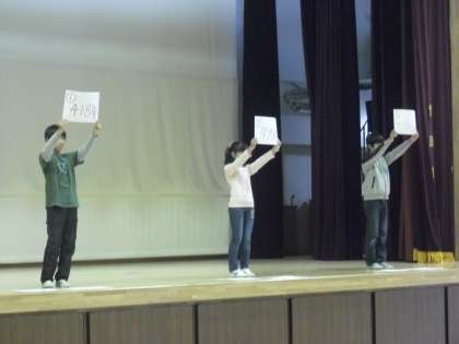 かなり、カルトな質問でしたが、集会委員会が出す3つの選択肢から答えを選び、子ども達は一生懸命に手を挙げていました。
