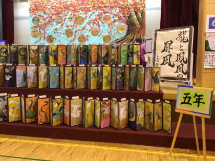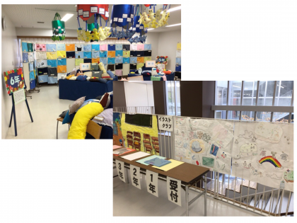 写真は5年生、6年生、家庭科、イラストクラブの作品の様子です。