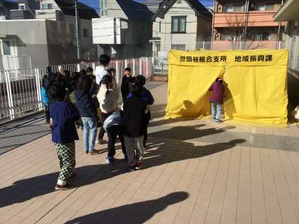 災害はいつ起こるかわかりません。いざという時に慌てないように、全学年で発達段階に応じたさまざまな体験活動に取組み、防災授業を行いました。煙中体験、新聞紙でのスリッパ作り、消火器訓練、B-VRを使用して地震の類似体験、AED訓練、アプリを使ったマイマップ作り、マンホールトイレ組立て体験等、災害時に命を守るためにどうしたらよいかを考えました。ご協力いただきました、避難所運営委員会、遊び場開放委員会、上町まちづくりセンター、世田谷消防署、(一社)データクレイドル、PTA、おやじの会の皆様、本当にありがとうございました。