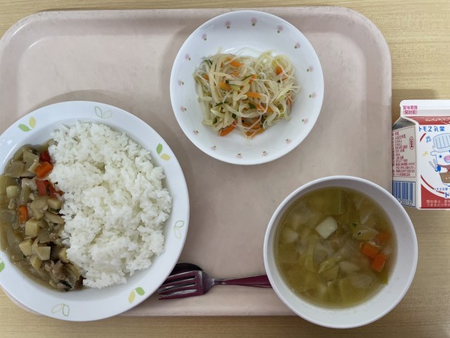 牛乳 ガパオライス ヤムウンセン レンズ豆のスープ