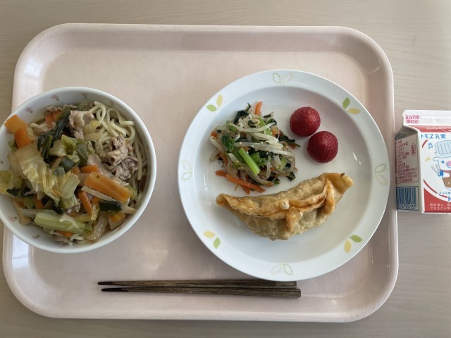 牛乳 醤油ラーメン ジャンボぎょうざ ナムル いちご