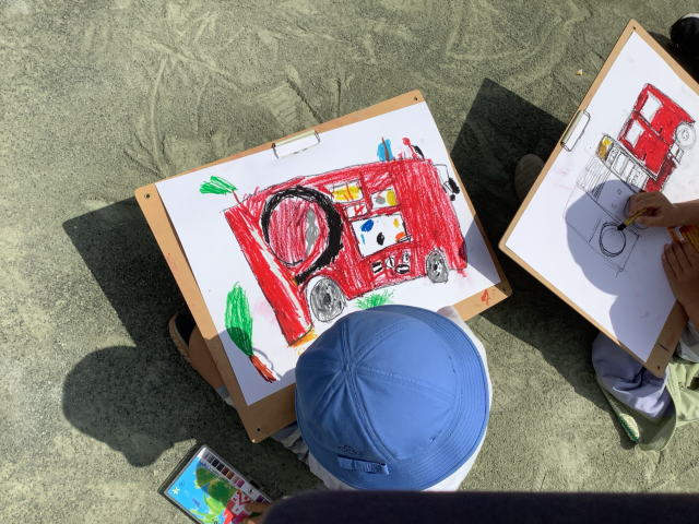5月1日木曜日に青空の中、消防写生会を行いました。