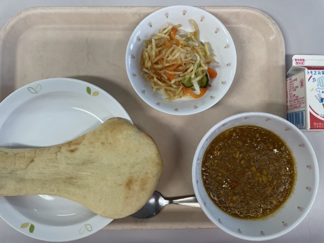 牛乳 ナン キーマカレー じゃが芋のハニーサラダ