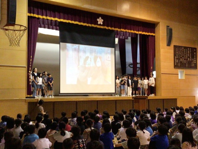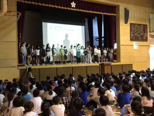 保健委員の5・6年生が、どんな仕事をしているか全校児童の発表しました。石鹸の補充や水質検査など、さまざまな仕事をしくてれていることがわかり、みんな感謝していました。