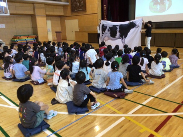 講師の方の話をよく聞き、牛乳に入っているカルシウムについて教えてもらいました。