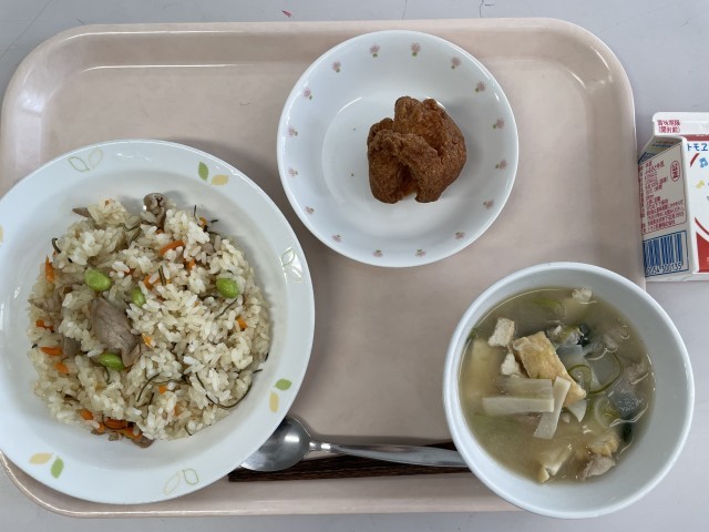 今日は沖縄県の郷土料理です。「シシジューシー」は沖縄の言葉で、お肉を「シシ」、炊き込みご飯を「ジューシー」と言います。つまり、「お肉が入った炊き込みご飯」です!「イナムドゥチ」という豚肉の入った味噌汁と「サーターアンダギー」も一緒に沖縄料理を味わってみてください🎵