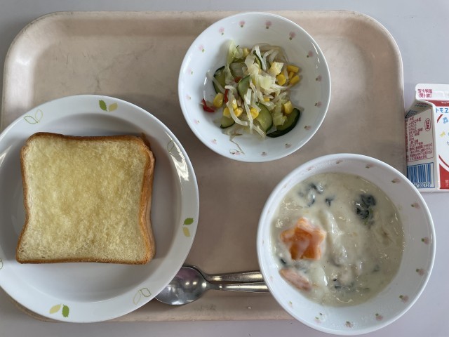 牛乳 はちみつレモントースト クリームシチュー カラフルサラダ